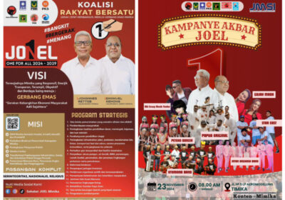 Siap-siap Warga Tumpah Ruah, JOEL Kampanye Akbar di Lapangan Aeromodelling SP5 22 November 2024, 15:01 pm Timika, KontenMimika.com - Besok, Sabtu 23 November massa pendukung JOEL, Si Rambut Putih – Kepala…