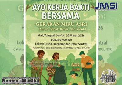 Jelang Idul Fitri, Kepala Distrik Mimika Baru Ajak Warga Gotong Royong Jaga Kebersihan Kota 19 Maret 2026, 11:32 am Timika, KontenMimika.com – Menyambut pelaksanaan Salat Idul Fitri, Kepala Distrik Mimika Baru, Merlyn Temorubun, S.STP,…