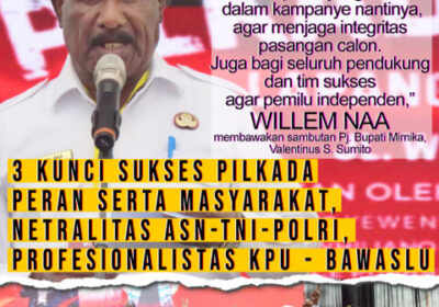 Kunci Sukses Pilkada : Peran Serta Masyarakat, Netralitas ASN dan TNI-POLRI, dan Profesionalitas Penyelenggara 26 September 2024, 10:59 am Timika, KontenMimika.com – Peran masyarakat dalam menyukseskan Pilkada Mimika 27 November 2024, dinilai sebagai kunci…
