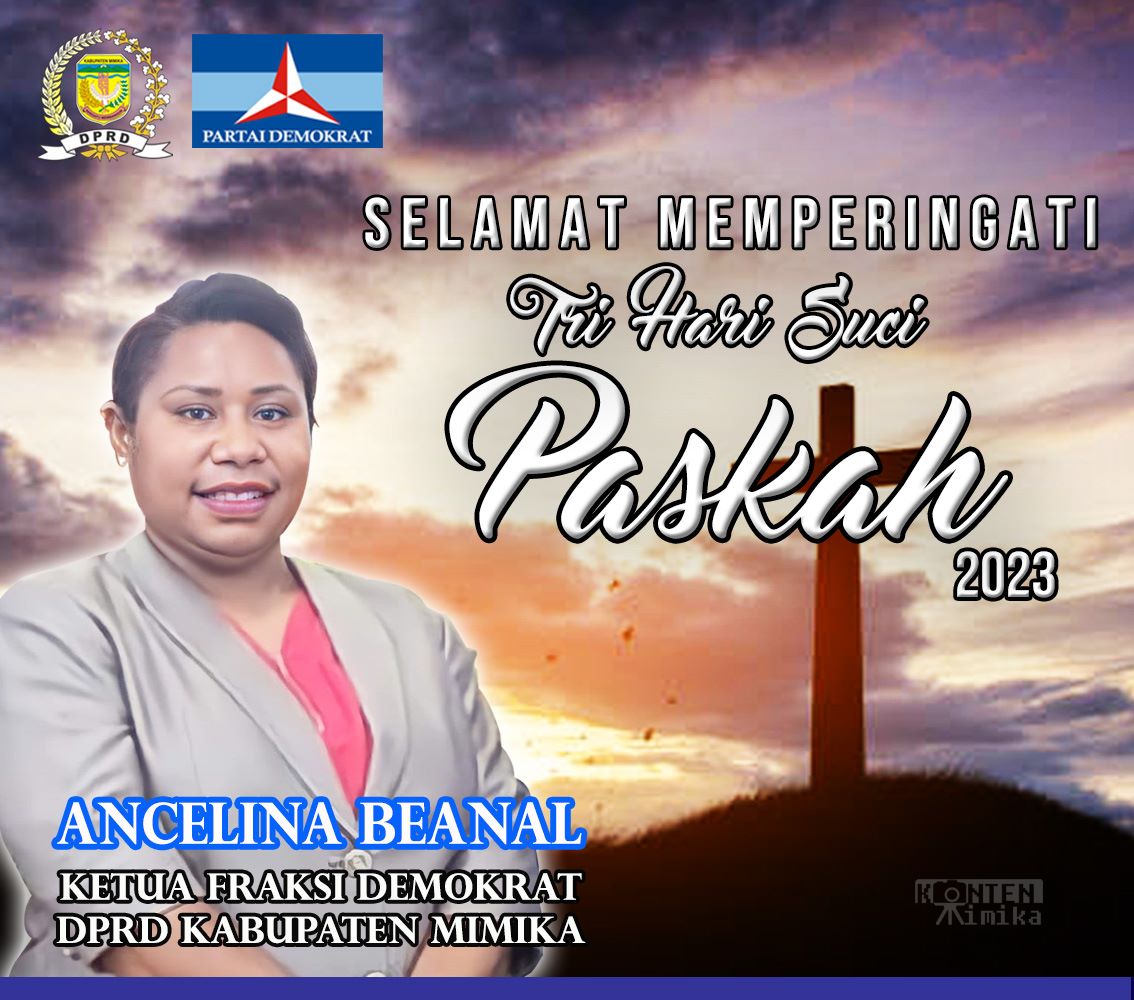 “Kiranya di Hari Raya Paskah ini, kita semua mendapatkan berkat rohani lewat memperingati peristiwa Salib Yesus Kristus, yang telah mengerjakan penebusan dan keselamatan bagi kita semua umat yang percaya. Paskah membawa damai, sukacita dan berkat keselamatan bagi kehidupan kita semua. Puji Tuhan, dia Allah kita yang telah mati tebus dosa kita dan pada hari ketiga Dia bangkit mengalahkan alam maut. Kuasa-Nya hebat luar biasa!” tutur Ancelina Beanal, yang kesehariannya sebagai Ketua Fraksi Demokrat DPRD Kabupaten Mimika.