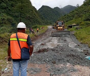 (Proses revitalisasi akses jalan utama menuju kampung Waa Banti menggunakan pasir batu gravel yang diambil dari CIP 72 area PTFI. Foto: Freeport.)