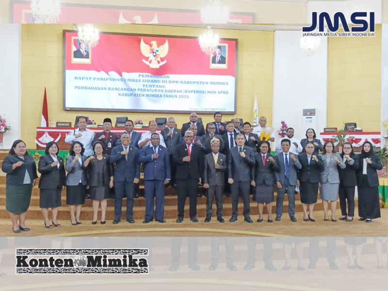Rapat Paripurna digelar di Kantor DPRK Mimika, Jalan Cenderawasih, Rabu 1 Oktober 2025.