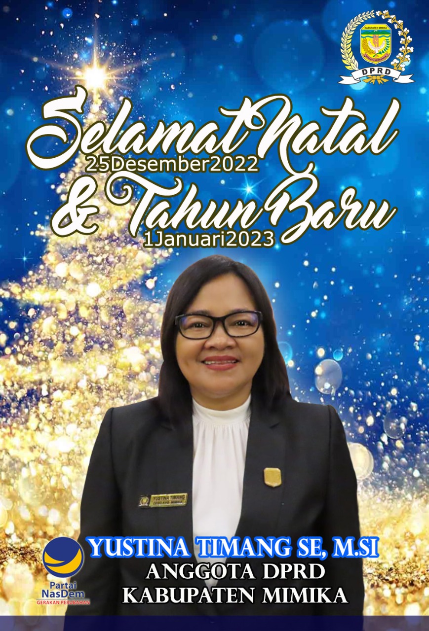 Mimika, Kontenmimika.com – Anggota DPRD Mimika, Yustina Timang, menyampaikan selamat Hari Raya Natal dan Tahun Baru, kepada segenap warga Mimika, khususnya bagi umat Nasrani. Hari spesial itu dimintanya untuk dimaknai dengan penghayatan keimanan dan bukan sekedar perayaan seremonial belaka.