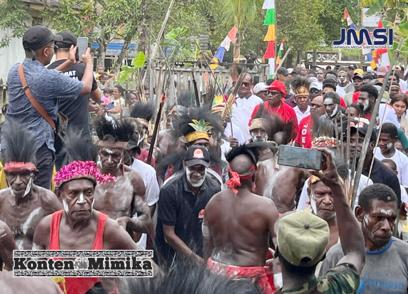 Ratusan warga Mioko antusias menyambut kedatangan si Rambut Putih – Kepala Botak, JOEL, Johannes Rettob – Emanuel Kemong, pada Kamis 21 November 2024.