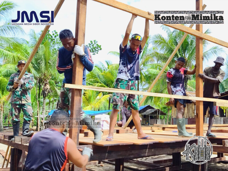 TIMIKA, KONTENMIMIKA.com — Pembangunan rumah milik Niko Makare di Kampung Keakwa, Distrik Mimika Tengah, terus menunjukkan perkembangan. Personel Satgas TMMD ke-128 Kodim 1710— Mimika bersama warga mulai memasang rangka rumah, Selasa, 28 April 2026.