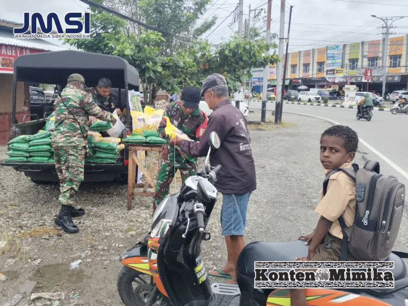 Timika, KontenMimika.com – Kodim 1710-Mimika melalui Koramil jajaran bekerjasama dengan Perum Bulog menggelar penjualan beras SPHP (Stabilisasi Pasokan dan Harga Pangan) untuk Warga Mimika