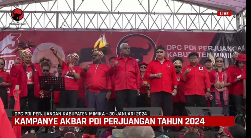 Timika, KontenMimika.com — Lautan manusia massa pendukung Partai Demokrasi Indonesia Perjuangan (PDIP) tumpah ruah di Lapangan Timika Indah, dalam Kampanye Terbuka, Selasa 30 Januari 2024.