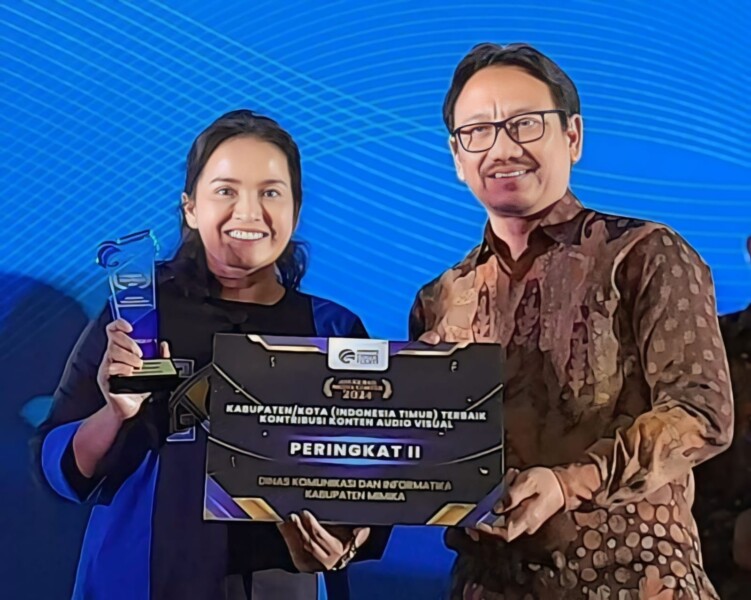Diskominfo Mimika memperoleh penghargaan kategori Kabupaten-Kota di Indonesia Timur Terbaik Kedua Kontribusi Konten Audio Visual.