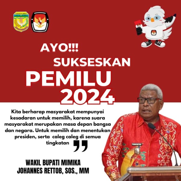 Timika, KontenMimika.com – Wakil Bupati Mimika, Johannes Rettob mengimbau warga untuk ramai-ramai datang ke Tempat Pemungutan Suara (TPS) untuk menyalurkan hak suaranya, memilih Presiden dan Wakil Presiden, serta Anggota DPD, DPR RI, DPR Provinsi dan DPR Kabupaten-Kota di Pemilu Serentak.